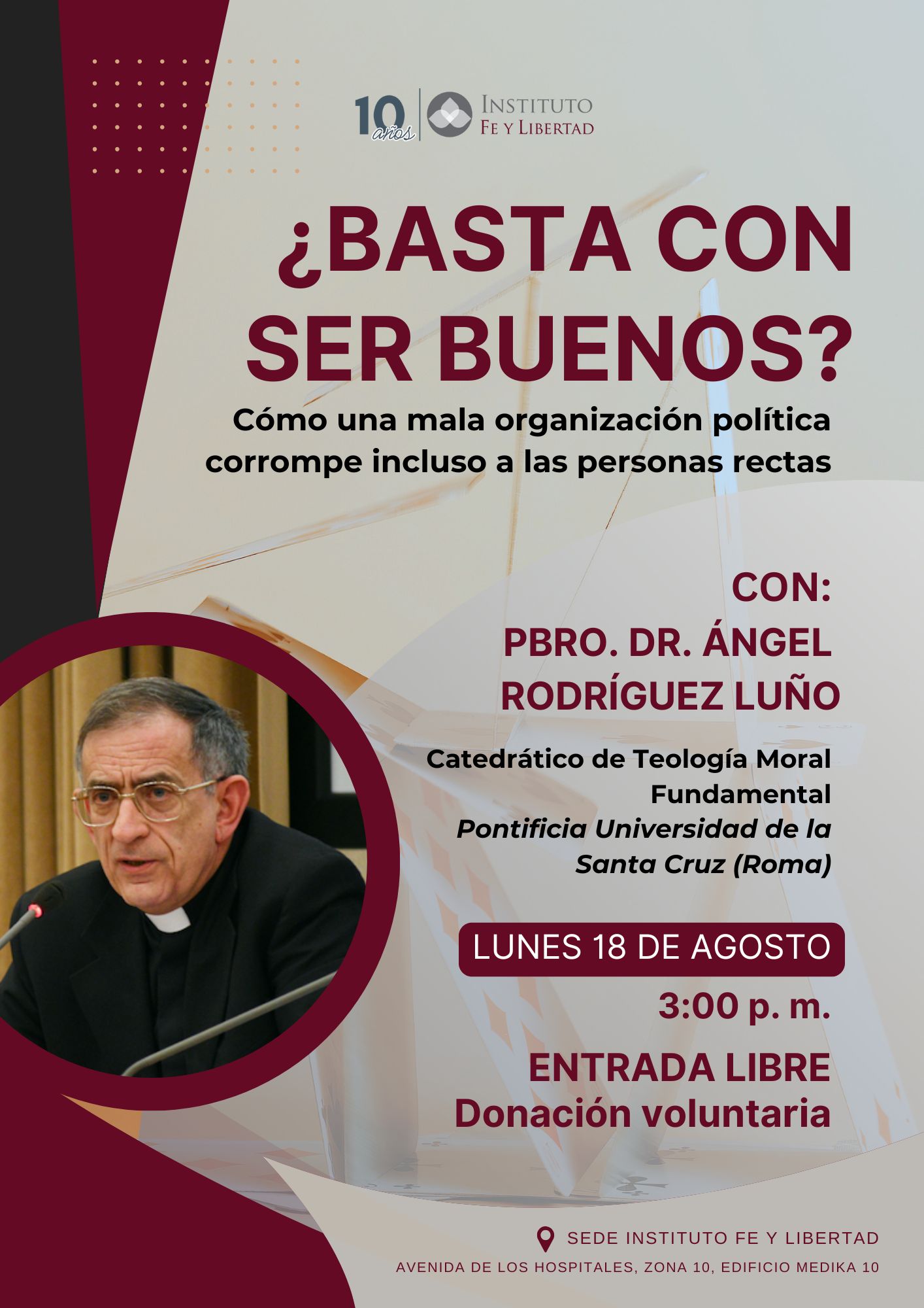El próximo 18 de agosto de 2025, el profesor y presbítero Ángel Rodríguez Luño abordará preguntas como éstas en la conferencia «¿Basta con ser buenos? Cómo una mala organización política corrompe incluso a las personas rectas». Esta exposición tendrá lugar en las oficinas del Instituto Fe y Libertad (IFYL) a las 15:00 horas.